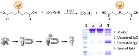 BcMag ? 固定化TCEP二硫鍵還原試劑盒(TCEP還原磁性基質(zhì))使用我們專門設(shè)計(jì)的磁珠,可有效還原蛋白質(zhì),多肽和其它含二硫鍵的分子中的二硫鍵(圖1)。TCEP([三(2-羧乙基)膦]還原磁性基質(zhì)避免了耗時(shí)的實(shí)驗(yàn)過(guò)程,不需要離心柱和分離柱操作,就可將還原樣品與還原劑分離。
