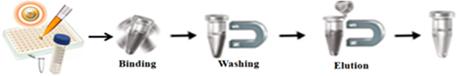 碘代乙?;胖樽鳛楣腆w載體可以完美地用于各種親和純化,將分子,細胞和部分細胞進行純化。只需要與配體結(jié)合后,將磁珠添加到含有目標分子的溶液中,然后混合,孵育,清洗和洗脫目標分子(圖3)
