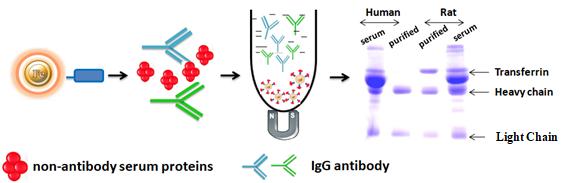磁分離非抗體血清蛋白結(jié)合的磁珠,從而獲得純抗體。