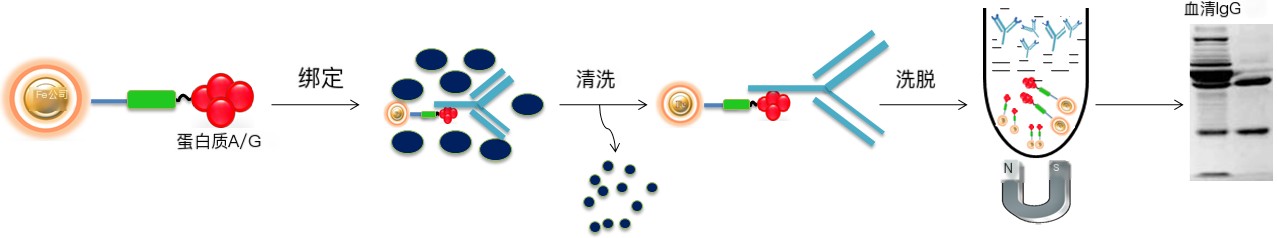 使用蛋白A/G磁珠從血清中純化抗體為例,一般純化方案如下(Fig.1):